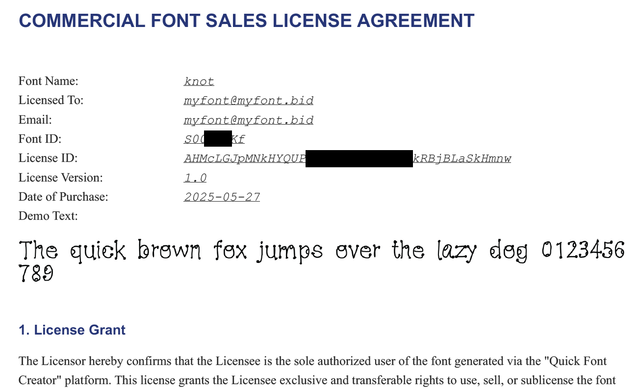 After generating a complete font, you can freely use it for any personal or commercial projects—this