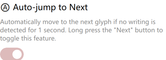 in Font Settings. When on, the app moves to the next character 1 second after you stop writing,